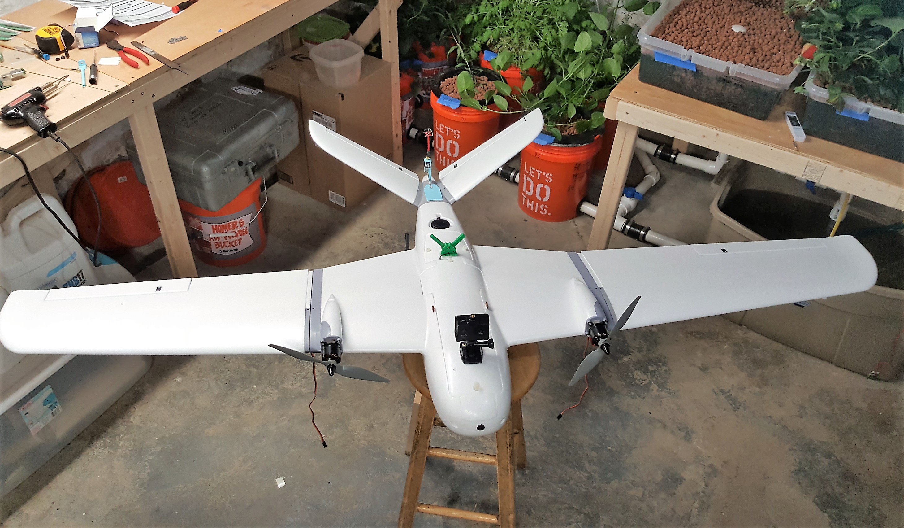 I started off with an XUAV Clouds pictured top. With a wingspan over 6 feet, this thing has a massive cargo capacity which really came in handy. For large fields > 5 acres, this is the best way to go. Sustained flight times can exceed one hour and it has a raspberry pi on board that takes images from two sensors. One is RGB, the other is NIR for field health.