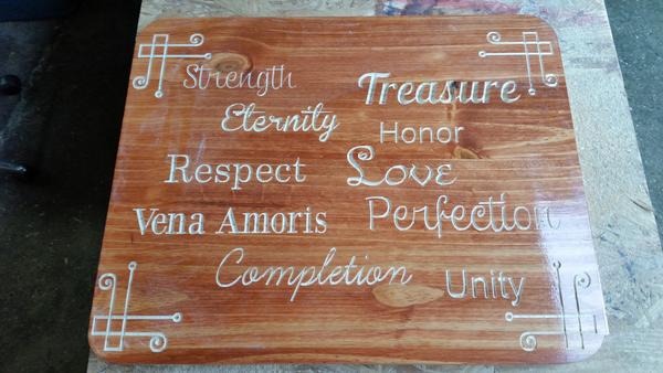CDLA started as a sign company, and most of our business remains there. We have the capability to produce single pieces up to 48" X 78", or tiled works to increase the build size. Typically pine is used to reduce weight and cost, but we can mill any wood you like. The initial plans are rendered before being sent to the mill to ensure the end product is what the customer has in mind. Signs can be painted a solid color or stained, and the text will be painted. We can use any color or stain available, and we can color match as well. Signs once finished are coated with 3 coats of polyurethane on the front and one on the back to produce a lustrous shine, and to ensure they can handle the elements for years to come. If you are interested, please feel free to send us an email at clayludwig@Gmail.com. Designs can be sent as an image, or custom designed by us.